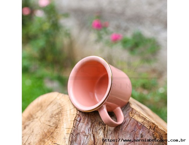 Caneca em cerâmica 280ml estilo ágata esmaltada com borda dourada, para personalização em sublimação.