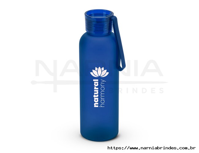 Squeeze esportiva em PET 100% reciclado, com acabamento fosco. A tampa em PS, à prova de vazamentos, possui fita em silicone que facilita o transporte. Capacidade até 600 mL. Certificação EU Food Grade. Medidas: ø66 x 215 mm
