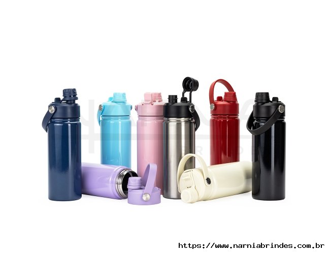 Garrafa térmica em aço inox 304 e capacidade para até 600ml. Apresenta estrutura de parede dupla e vedação a vácuo, oferecendo a conservação da temperatura de líquidos por mais tempo. Possui tampa rosqueável feita em plástico com proteção para o bocal, bico flip, canudo interno removível e alça fixa para transporte.